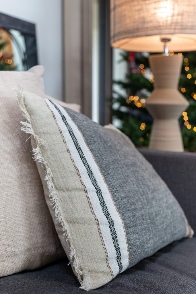 Añade sofisticación a tu hogar con nuestra Funda Cojín Lino Negro y Beige, parte de la nueva colección de Lino Bélgica.