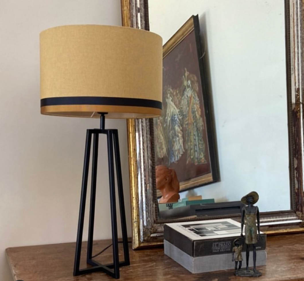 Pantalla en Tela Ocre con Detalle de Falla Negra y Caramelo: Elegancia y Sutileza